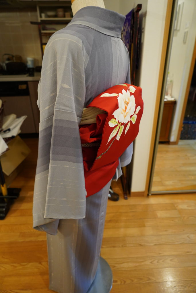 Kimono has season. Dressing up right season one is showing how much you understand Kimono. So nice to pay attention it. This non-lining summer hitoe Kimono is polyester so you can wash at your home. The obi is pre-made silk Nishijin Ro-tutudure so easy to tie and you can use other summer Kimono for sure. Now mannequin uses winter color …