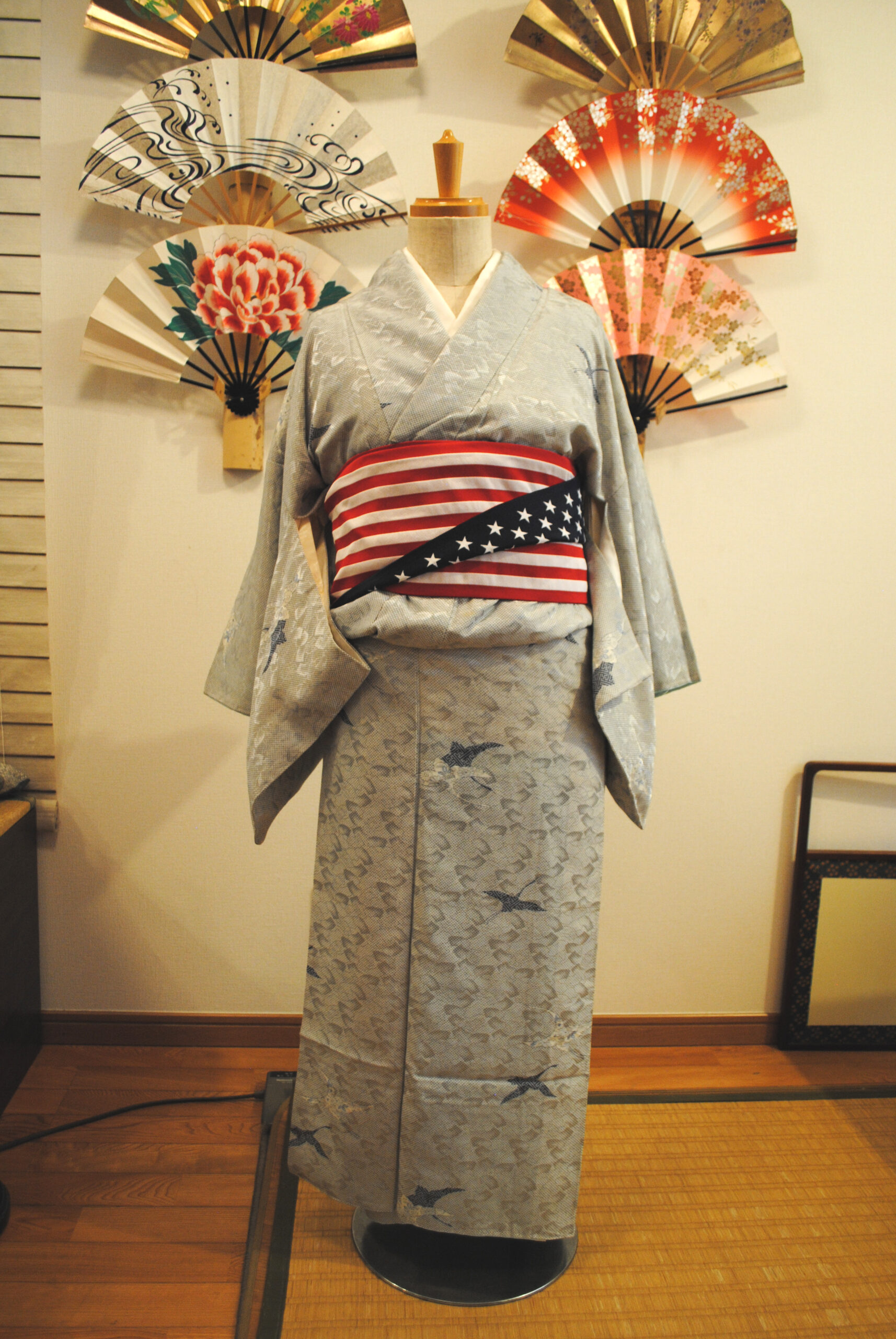 SOLD Woven Silk Kimono+Hanhaba Obi Set