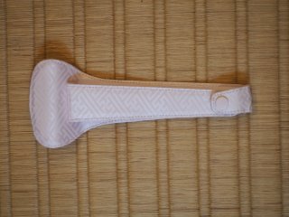 ⑬帯揚げ (おびあげ): [obiage] A delicate cloth that is laid over the ‘pillow’ (used when tying the obi) and is tied in the front of the obi; is meant to show slightly above the top section of the obi in front.
