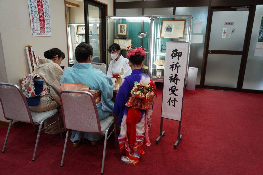 Photo UP : Help with traditional Ema wish-writing / Photo middle ;Shichigosan (7-5-3) Celebration & Shrine Blessing Support / Photo donw :We’ll help you draw and interpret your Omikuji (fortune slip).